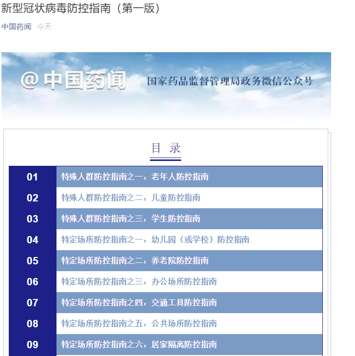 新型冠状病毒防控指南(第一版)