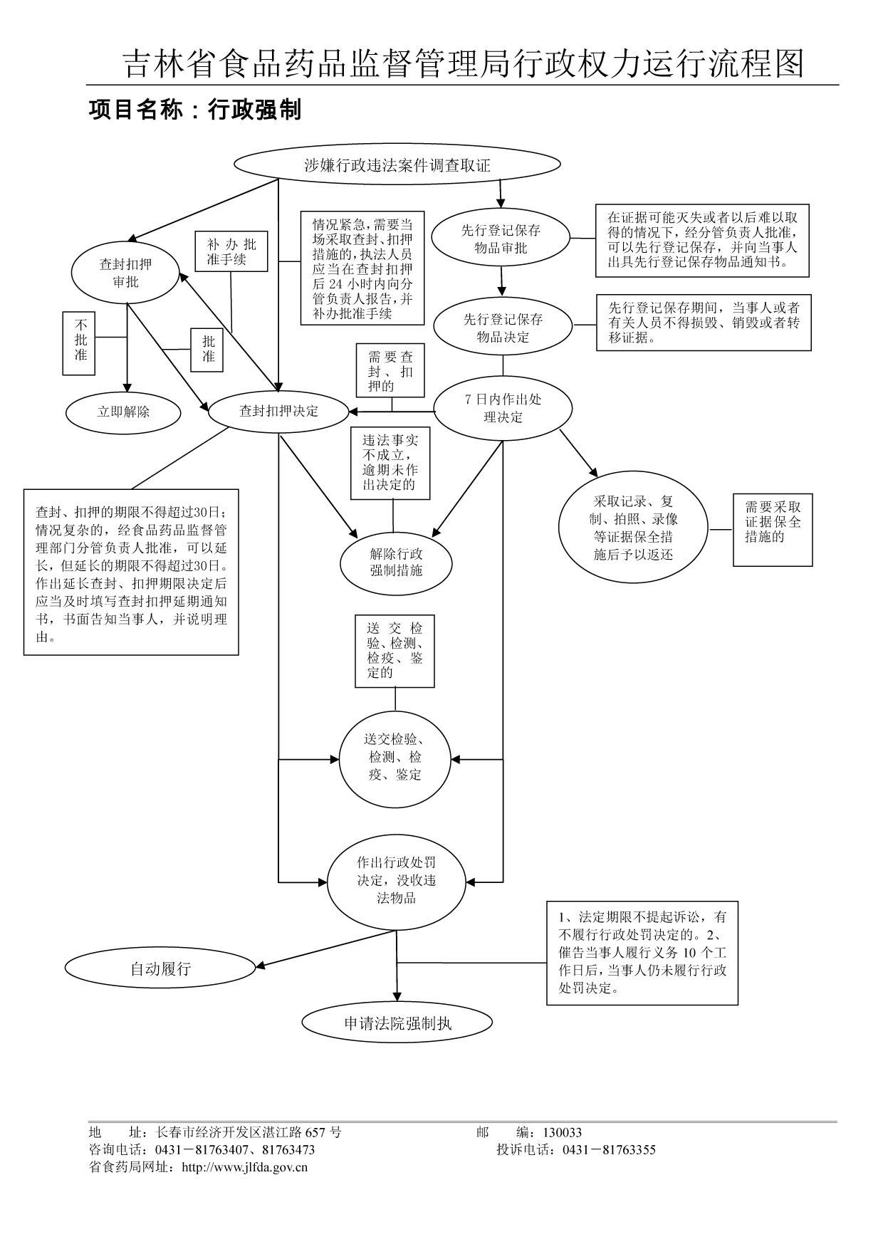 | 法律依据: 《药品管理法》第六十五条第二款:药品监督管理部门对有证据证明可能危害人体健康的药品及其有关材料可以采取查封、扣押的行政强制措施,并在七日内作出行政处理决定;药品需要检验的,必须自检验报告书发出之日起十五日内作出行政处理决定。 权力运行图: ![]() 申请条件: 无 申请材料: 无 |