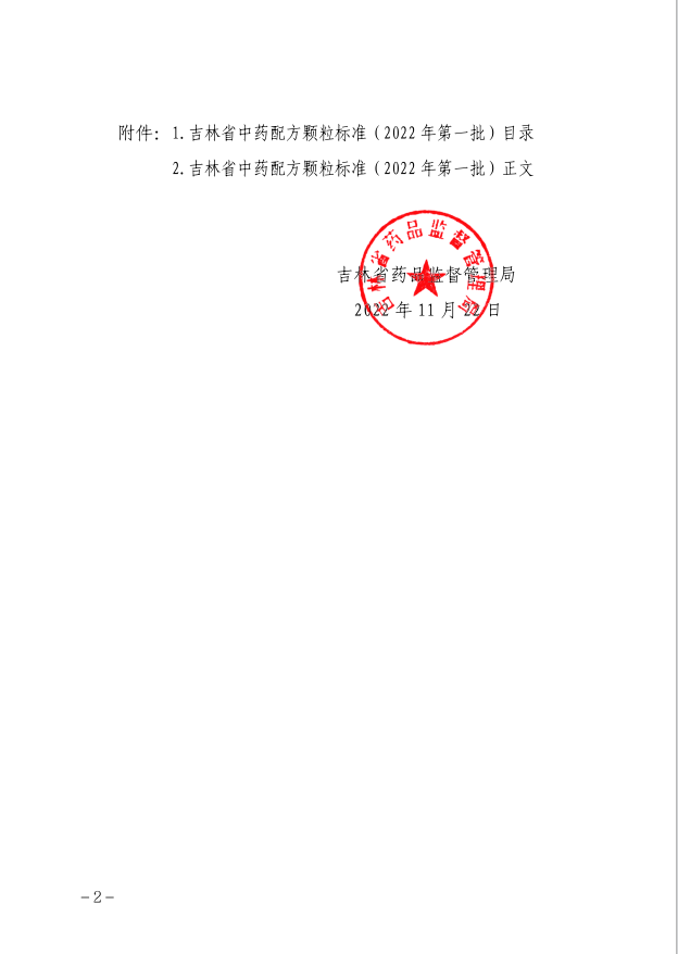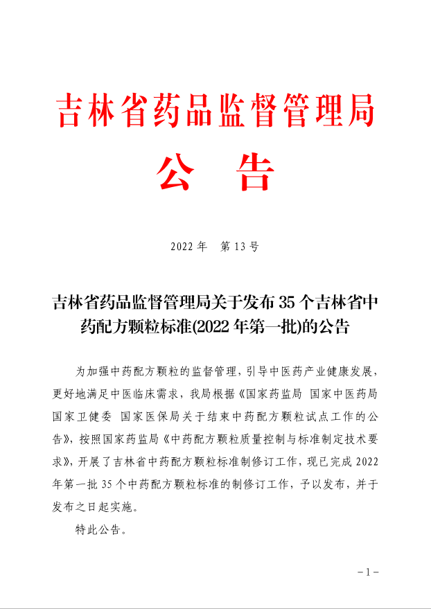 吉林省药品监督管理局关于发布 35 个吉林省中药配方颗粒标准(2022 年第一批)的公告