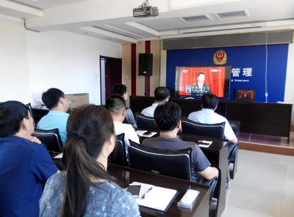 7月1日上午10点整,白城市食药监局洮北分局组织全体党员观看中国共产党成立95周年大会现场直播。观看现场,全体党员全神贯注,认真收看现场直播。