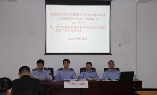 会上,辽源市食品化妆品稽查局局长张勇首先通报了大型聚餐单位食品安全检查存在的问题,希望在座的各位法人、负责人一定要牢固树立“食品安全大如天”的意识,进一步强化自律,保障消费安全。二是警示告诫。向大家发出一个信号,约谈之后必有惩戒。如果这次约谈之后,经检查问题依旧,将对存在违法行为的单位依法依规做出处理。