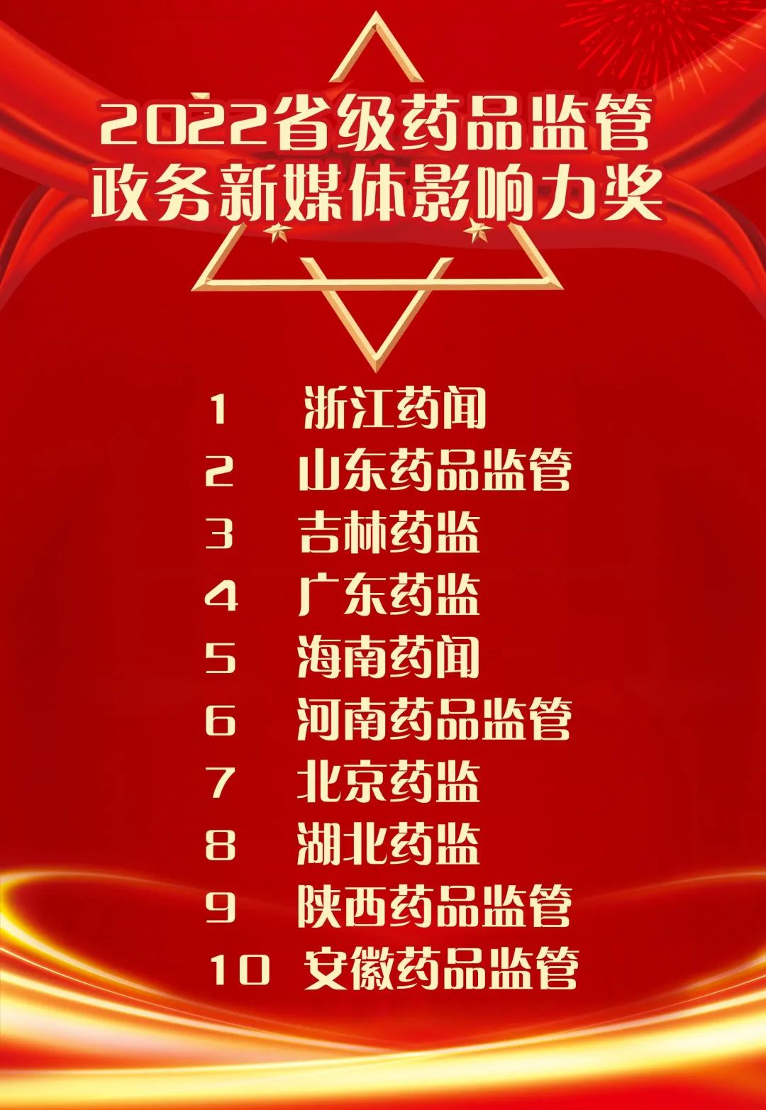 2月15日,中国医药报发布“2022年度省级药品监管政务新媒体榜单”,其中,“吉林药监”荣获“2022省级药品监管政务新媒体影响力奖”第三名。